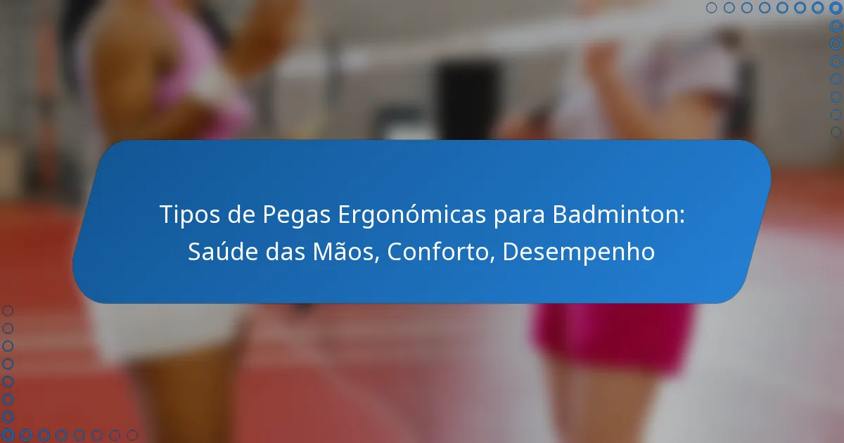 Os tipos de empunhadura padronizados para badminton são essenciais para otimizar o desempenho e o conforto dos jogadores, pois estão disponíveis em vários materiais, formas e texturas. Ao selecionar o tamanho de empunhadura apropriado com base nas medidas das mãos, os jogadores podem melhorar o seu jogo enquanto minimizam o risco de lesões. Compreender a compatibilidade de diferentes tipos de empunhadura com raquetes específicas é crucial para alcançar o melhor desempenho possível em campo.